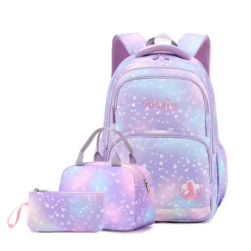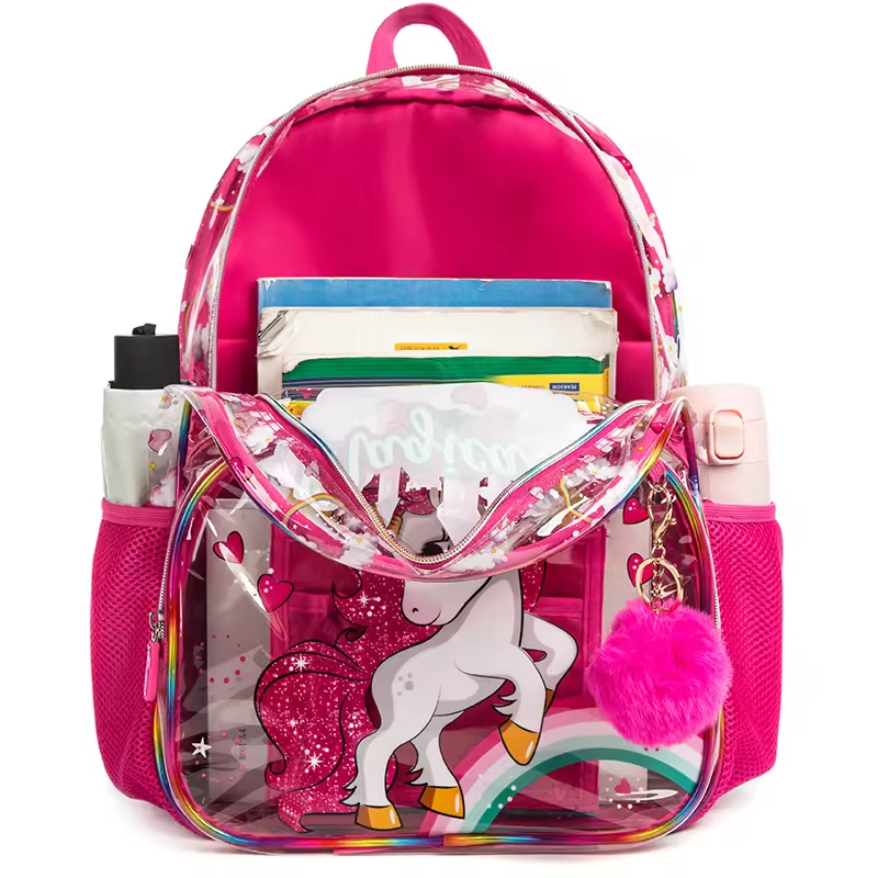 女の子スクールバックパック子供のためのスクールバッグユニコーン透明バックパックセット女の子バッグランチトートバッグ